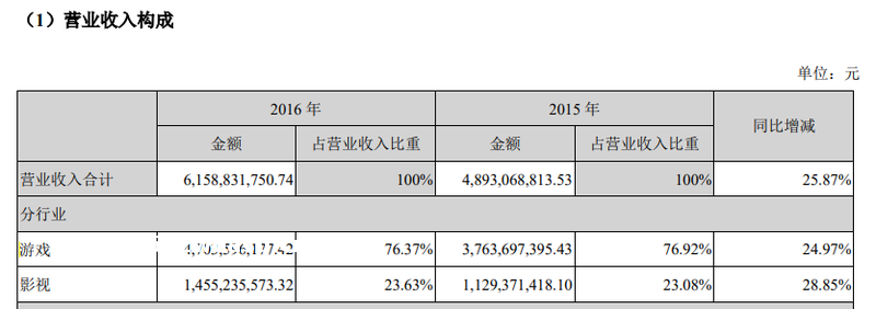 受限于**热度,成功案例并不多。随着前者评分扑街,手游也不了了之。从整体营收来看,在具体业务上,2016年,游戏业务营收占比76%,**业务营收仅占比23%,体量并不相当。
