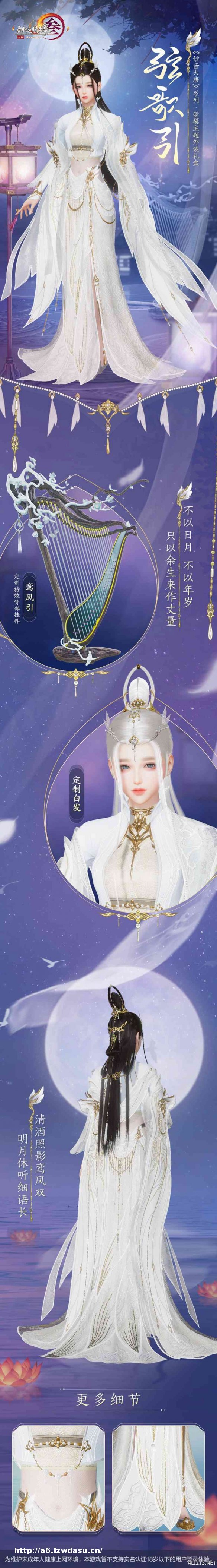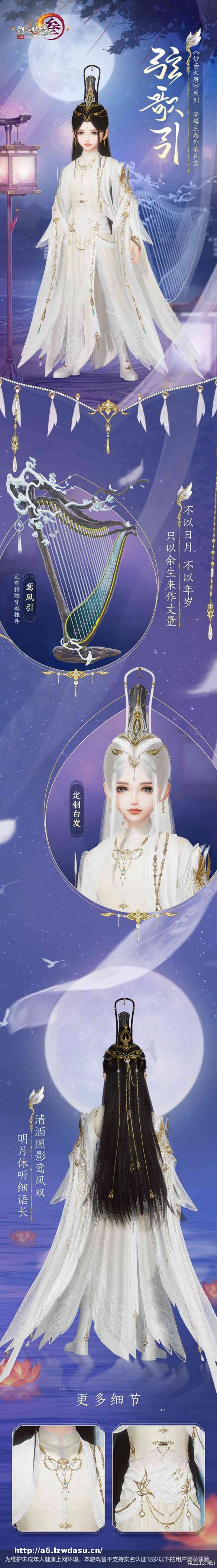 弦歌声起,百鸟**,《剑网3》携手酷狗音乐,共创大型国创企划《华夏风物集》与君共品华夏民族文化精粹,首卷《妙音大唐》系列再添新作——箜篌主题外装礼盒携同名主题曲《弦歌引》今日震撼来袭!世有传闻少昊帝年少历练时遇其妻凤鸿氏,而后二人于东海之滨建百鸟之国。夜景空境,灯火通明,箜篌声转间,将那曲少年英雄情长的故事缓缓道来,江湖路远,愿天下有情人皆得良缘!MV视频今日震撼来袭,特邀诸位一同欣赏!