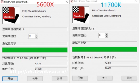 **个项目是经典的CPU测试程序——国际象棋测试,我们可以看到11700K的步数分为20400,R5 5600X的步数分为21020,令人意外的是,在对比缺少了两个核心之后,5600X依然小优于11700K。