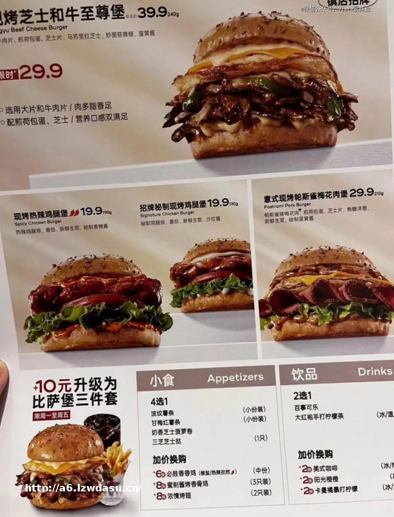 必胜客做起汉堡来,既像塔斯汀又像麦当劳,目前小试牛刀仅推出4款,主推产品直接对标咱麦麦安格斯牛肉的和牛堡,售价只要29.9元,其他三款的价格分别是19.9元和29.9元。