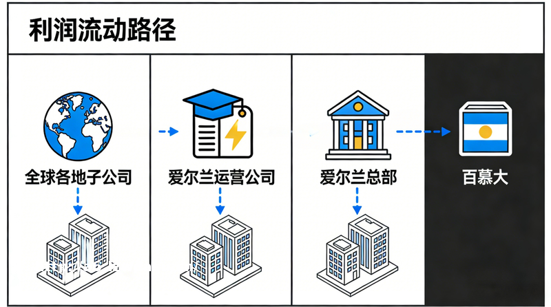 它的玩法叫 “双层爱尔兰架构”:先把海外**基地放在爱尔兰,利用当地 12.5% 的低税率;再通过 “**成本均摊计划”,让爱尔兰公司花钱委托美国公司**,把各国利润都转移到爱尔兰;最后让爱尔兰分公司由百慕大公司控制,利用爱尔兰 “按实际控制地征税” 的漏洞,成功规避爱尔兰本土税收。一套操作下来,苹果海外税率常年不到 4%。