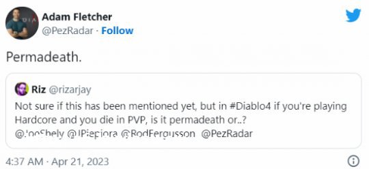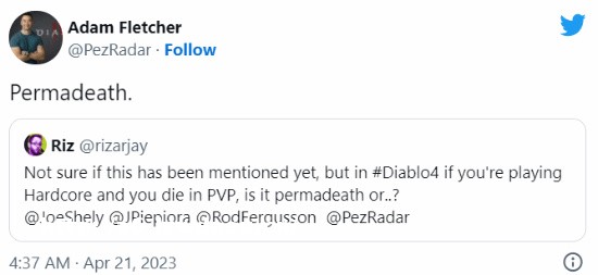 暴雪的新作《暗黑破坏神4》不日就将上线,但在几天前一则来自于社区总监的消息,却给到了玩家们一记当头棒喝!社区总监Adam Fletcher确认,《暗黑破坏神4》中包含硬核难度,届时玩家们在PVE和PVP模式下被击败,将会被删除该存档。