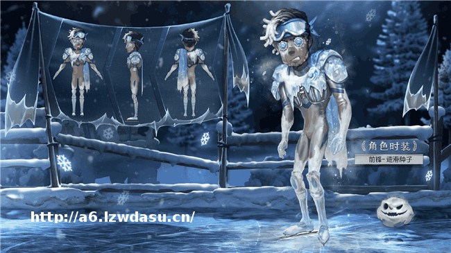 《第五人格》发布的精华海报中,破轮奇珍时装-球球在展示一副宣传画,画中的前锋稀世时装-速滑**和调香师奇珍时装-冰上舞蹈正全身心地进行赛前训练,展现着专属于冰雪的力量、速度、优雅与技巧。