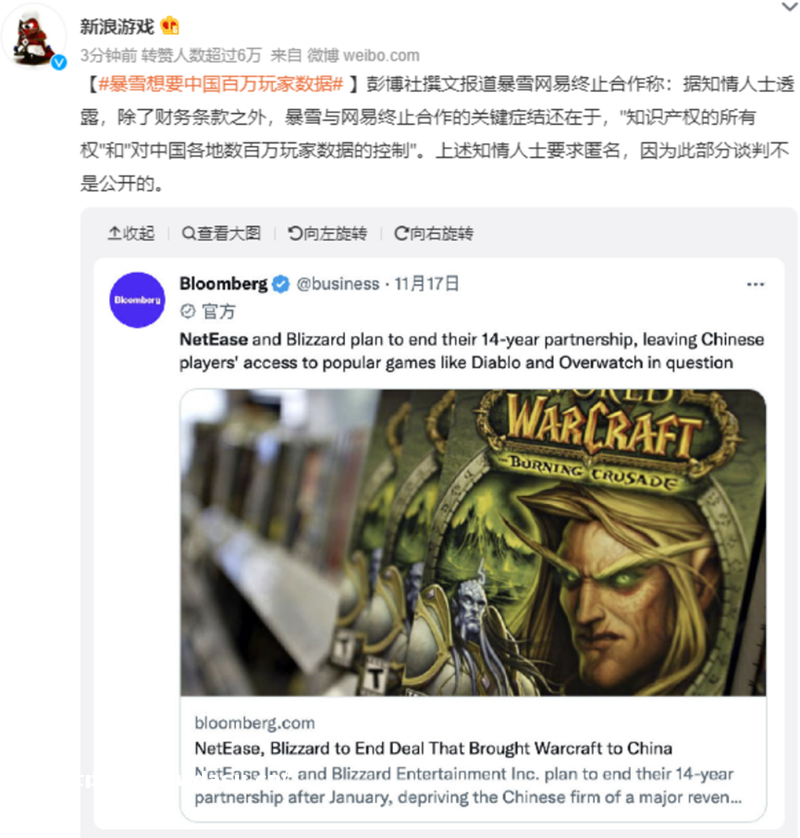 俗语常说“做人留一线,日后好相见”,暴雪在中国市场耕耘了这么多年,显然没有把中国文化与处事方式研究透彻,最后又在临近分手时的2023年2月中旬,双方还在上闹出“离婚”**,上演了一场**斗法。