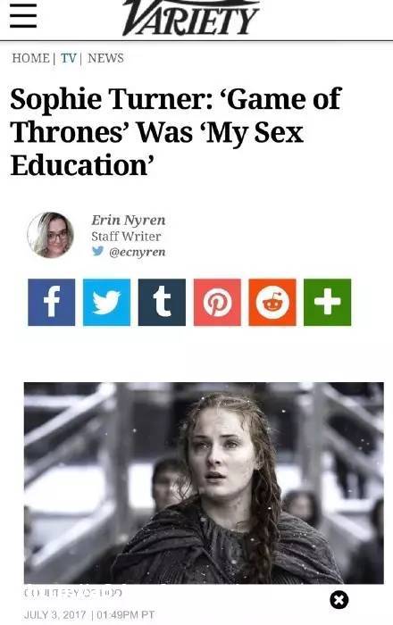 Sophie Turner自曝《权力的游戏》是她的*教育启蒙