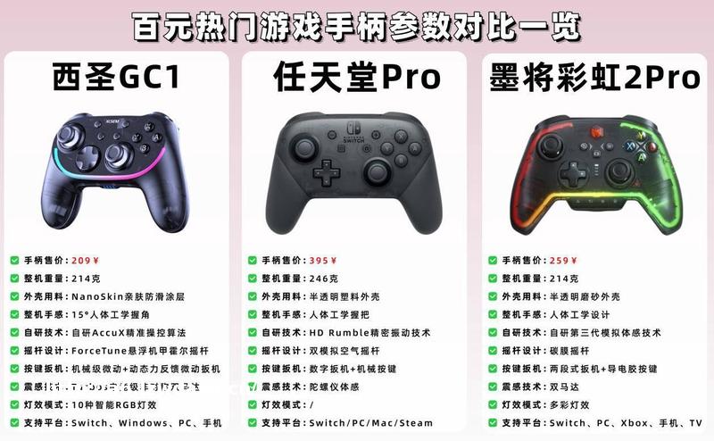 玩游戏选手柄就跟挑耳机一样,百元价位最容易踩坑,我自己折腾过十几款手柄,西圣、墨将、任天堂这三款基本是绕不开的热门:西圣靠*价比杀疯了,墨将颜值与功能拉满,任天堂则是主机原生体验天花板。