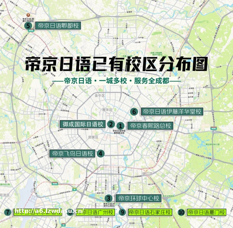 帝京日语,在成都总**3000万打造。旗下多家公司、学校,有多个办学**证的培训学校、也有出国留学公司及文化交流中心。另有高岛留学、御成国际日语、飞鸟日语、飞鸟留学、出云日语、初花、东成、《未来日语》等日语和教材子品牌,是**少有的大型日语学校。