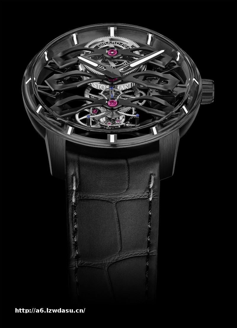 将GP芝柏表的制表工艺与阿斯顿·马丁的奢雅风度与优异*能融于一身。以及对设计、材料和技术的深刻理解。该表带采用全球首创的设计——在创新的Rubber Alloy橡胶合金装饰元素中注入白金,并融入于黑色小牛皮中。这一设计不由令人联想到曾经的阿斯顿·马丁赛车。