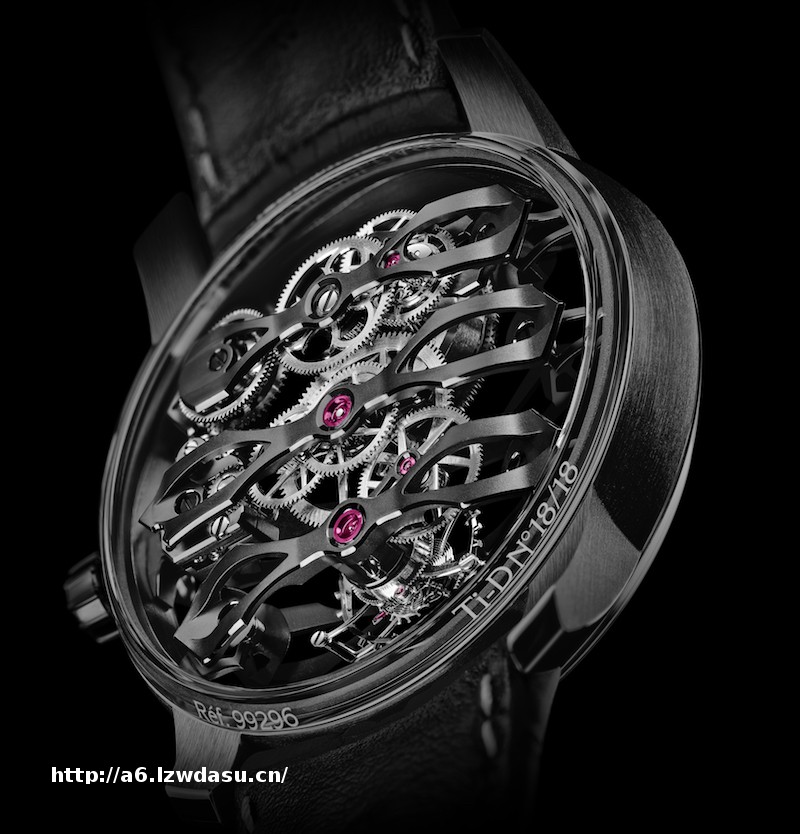 这款腕表继承了GP芝柏表的传统,拥有精巧的比例设计与富于美感的造型。三飞桥陀飞轮腕表阿斯顿·马丁特别版的44毫米陀飞轮表壳采用5级钛合金,这种坚固、低敏感*的轻量级合金备受阿斯顿·马丁品牌青睐。黑色类金刚石碳 (DLC) 材料则赋予腕表低调的外观。