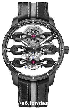 位于表盘下半部分的陀飞轮笼架呈“竖琴形”,这一特色设计的历史可追溯至GP芝柏表19世纪的陀飞轮腕表。笼架上有一根指示秒数的蓝钢指针。陀飞轮笼架直径仅为10毫米,由79个部件组成,仅重0.25克。*低的重量设计也在无形中降低了能耗。GP芝柏表三飞桥陀飞轮腕表阿斯顿·马丁特别版发售18枚,即将供售于GP芝柏表全球所有**零售店。