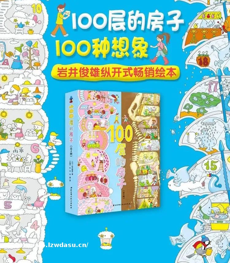 这套书名气太大,不得不提,而且细节处理又很真实,以10层为单位,一直画到100层。每一层小动物都有不同的生活场景,洗澡、吃饭、玩游戏,每个场景其实也扣住了动物的特点。
