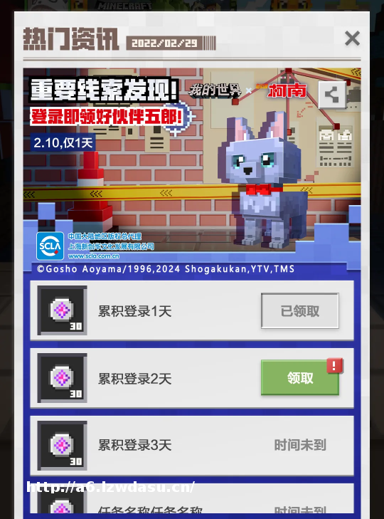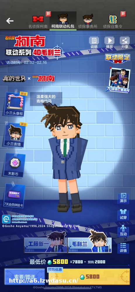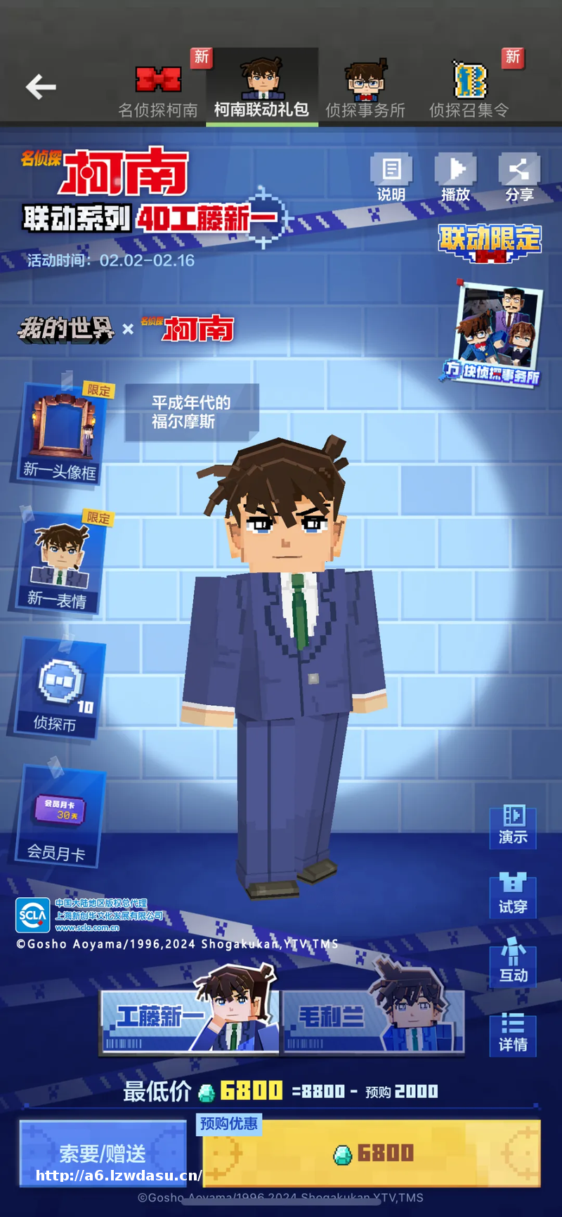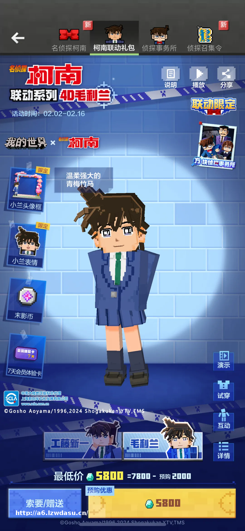 你还记得《名**柯南》中的神秘少女灰原哀和五郎猫吗?**事务所正式登陆方块世界,为冒险家们带来了超丰厚的联动奖励!从即日起至2月13日,冒险家进入方块世界参与每日联动签到,达到相应的签到天数,就可以轻松获得精美联动皮肤和灰原哀联动表情!快和伙伴们一起参与【重要线索发现】玩法,把联动皮肤带回家吧~