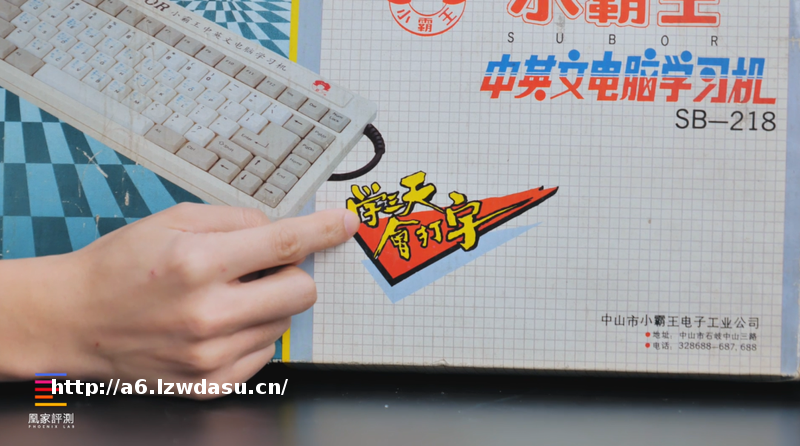 盒子上除了产品照片,还有许多十分有年代属*的标记:硕大的小霸王商标,从****始就确立的产品名字——中英文电脑学习机,还有这句招牌slogan——「学三天会打字」。