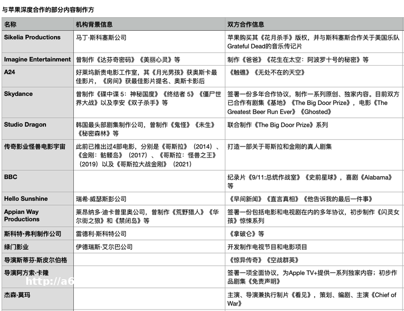 一方面,**文学作品改编、经典电影剧集改编、名人传记改编/纪录这三块占了很大比重。对于内容基础薄弱的苹果TV+来说,这是一个快速有效的策略,获得相对有保障的内容源。