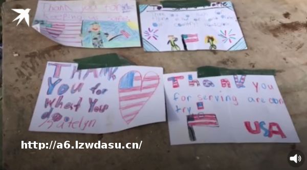 一些疑似是儿童送来的慰问画,也被美军遗弃。画上写有,“谢谢你们保护我们的安全”,“谢谢你们驾驶飞机,保护我们的**”,“感谢你所做的一切”等。