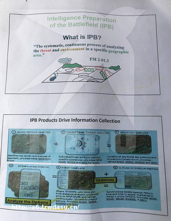 地上还有一份详细介绍“如何在战场进行情报准备工作”的教程。美军撤离后,有部分库尔德人随即占领该基地,就地搜刮物资,但这份教程显然没有引起库尔德人的兴趣。