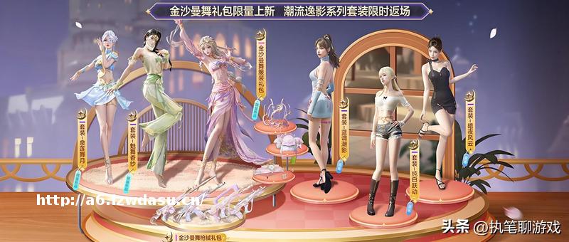 接下来咱们再来讲解“**曼舞”系列,该系列将会限定数量,粉装角色名字叫妙音铃舞、紫级套装名字分别叫泉莲舞月、魅舞香纱。同时还有头盔、背包、降落伞、挂件等。