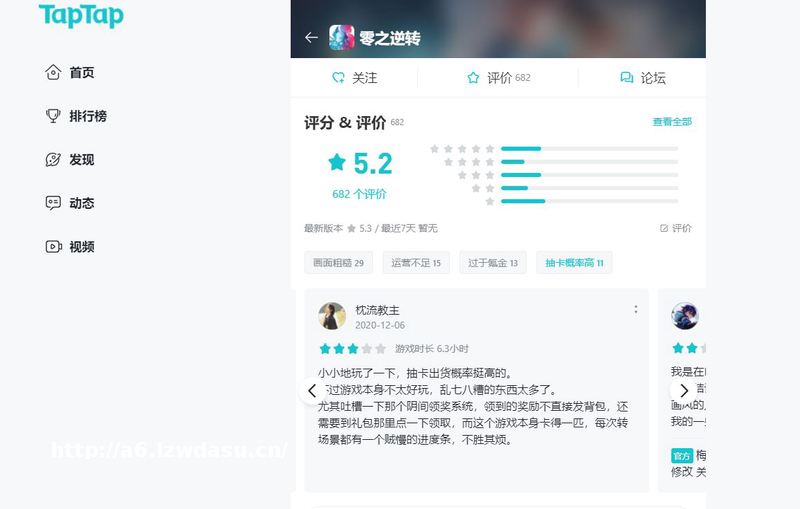 以《零之逆转》为例,这款游戏在TapTap上的评分仅为5.2(总分10),“画面粗糙”、“运营不足”、“玩法较差”等评价占了大多数。纵观多酷旗下游戏,仅有4月上线的《舌尖上的小镇》保持着较高热度,而它还是一款披着模拟经营皮的休闲游戏。