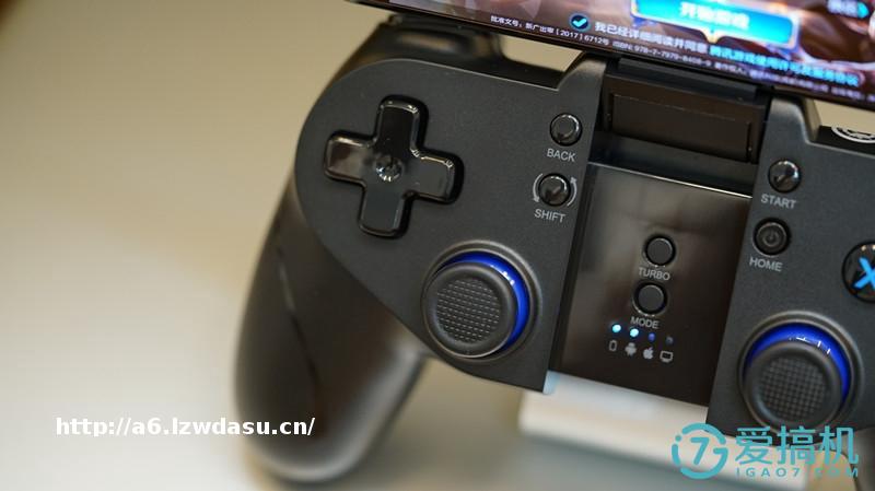 拥有摇杆、十字键、功能按键、指示灯功能键,顶部左右分别是LB/LT、RB/RT肩键。摇杆采用了最专业高端的**ALPS电竞摇杆,推拉摆动的阻尼感适中,摇杆能微调0.1cm的那种。