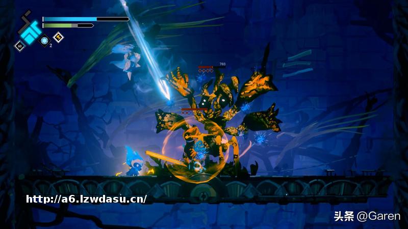游戏的难度比大部分的类银作品要难上不少,主要是通过以格挡反击来应对种类不同的敌人,除了敌人们的攻击手段不同,前摇、后摇、攻击范围等影响格挡的因素都需要考虑在内。同时防御也需要从正面面对敌人的攻击才能触发格挡和后续的连击,对于使用的时机是近乎于苛刻的。(更新后除**难度不强制正面,判断宽松了很多,**难度甚至可以长按防御免伤)
