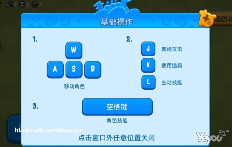 《野蛮**作战》的是一款多人互砍的竞技游戏,操作比较简单,WASD控制方向,J是普通攻击,K使用道具,L主动技能。