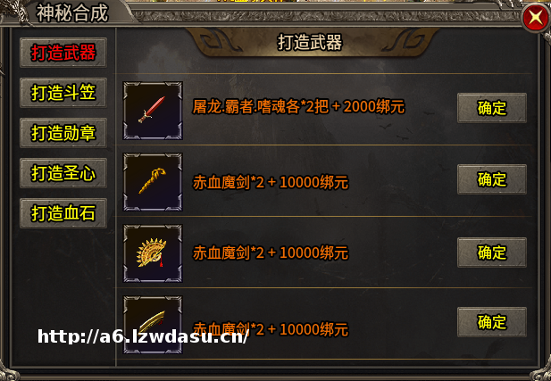 游戏里还有神秘合成玩法,可以让玩家一步到位拿到**装备。比如先用屠龙、霸者、嗜魂作为关键素材合成赤血魔剑武器,两把赤血魔剑进一步合成紫金嗜魂法杖、赤金逍遥扇、黄金屠龙,三职业殊途同归。