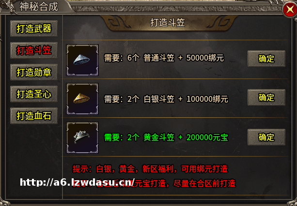 斗笠、勋章、圣心和血石4种装备的主要依靠怪物掉落的普通装备一步步合成升级,从普通、白银、黄金一直到倚天级别。难度同样不大,一个勤字就能实现目标。