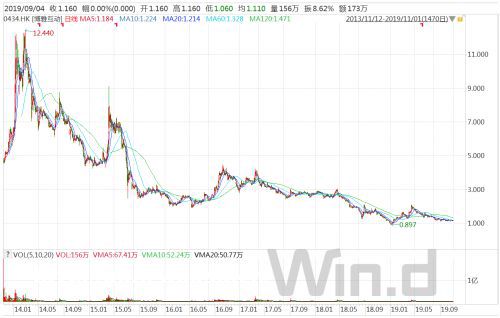 2018年3月,公司2018年全年营收4.53亿元,同比下降38.4%。收入下降的重要原因是“市场传闻将出台《**类游戏管理办法》,******类游戏”,这导致部分平台对其相关产品进行了**处理;2019年,公司业绩继续呈下滑之势,半年报显示2019年上半年实现营收1.60亿元,同比下降43.5%。另外,付费玩家数量、用户总数、月活跃用户等均出现了明显下滑,目前市值已不足8亿元。