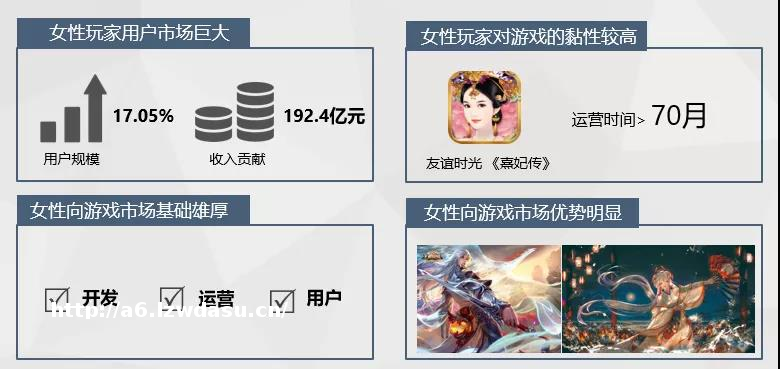 女*向游戏市场是必争之地:女*向游戏无论是在技术上,还是开发与运营上,都有了坚实的基础与充分的经验,用户已经经过市场教育阶段。借助女*向游戏的相关经验,也能为大多数主流游戏拓展大量女*用户。《王者荣耀》《阴阳师》《和平精英》等游戏深受女*玩家喜爱在一定程度上是佐证。