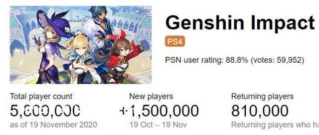 在去年11月《原神》在PS4平台上的预约用户量就超过了580万,不久这一数字就突破了600万。虽然这与游戏在PC或移动端的用户量相比是小巫见大巫,但这个量级相比其他PS主机游戏来说并不低。