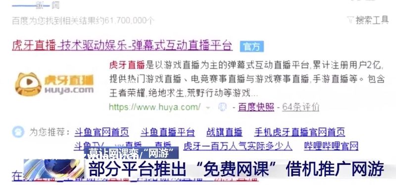 6 月 8 日,在虎牙**的免费上网课渠道,首先弹出的却是各种网游的兴趣选项。虎牙**回应称:报道中提及的未成年人消费**,