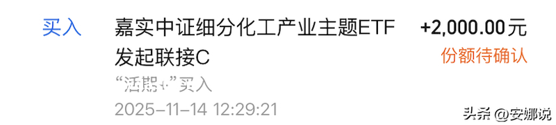 今日加仓2000。近期细分化工一直震*上行,最近出现明显放量反弹,或正在酝酿新一轮上攻行情。宏观面上,化工产业链景气度持续提升;结构上,新能材、精细化工等高附加值领域受益于政策扶持与需求扩张,成长突出。该**紧密跟踪细分化工指数,涵盖优质化工龙头,基本面稳健,兼具成长与一定防御属;同时费率较低,整体价比突出。科技行情预期继续震*,四季度应是化工布*周期,因此本人加仓。(非**建议)