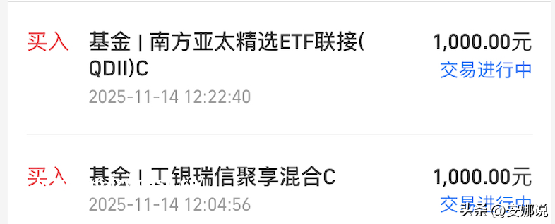 本人今日加仓电池、债混和亚太精选各1千元,化工2千元。如有改动,全球**震*,市场短期风险加大。不做**建议。