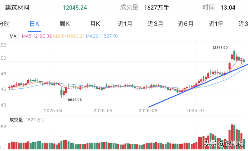 基建、建材和煤炭最近飙升,伴随放量,突破压力位,趋势反转向上。但短期涨幅过大,很快冲高回落,可能再次陷入震*,不知道震*多久,因此本人今日将够7日建材和煤炭转入通信,不做**建议。