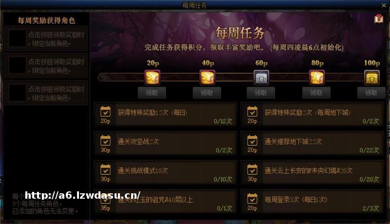 每周任务于周四6点初始化,小伙伴们周三晚上一定要记得领取每周任务奖励,通过每周任务可以获得大量时间引导石、打造材料与增幅器。
