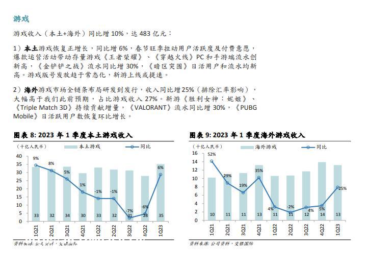 我们能看出这一季度腾讯的海外收入主要来自于《胜利女神:妮姬》。腾讯在去年1月**了《胜利女神:妮姬》游戏**商Shift Up的20%股权,这是腾讯在2022年最重大的游戏公司**之一。