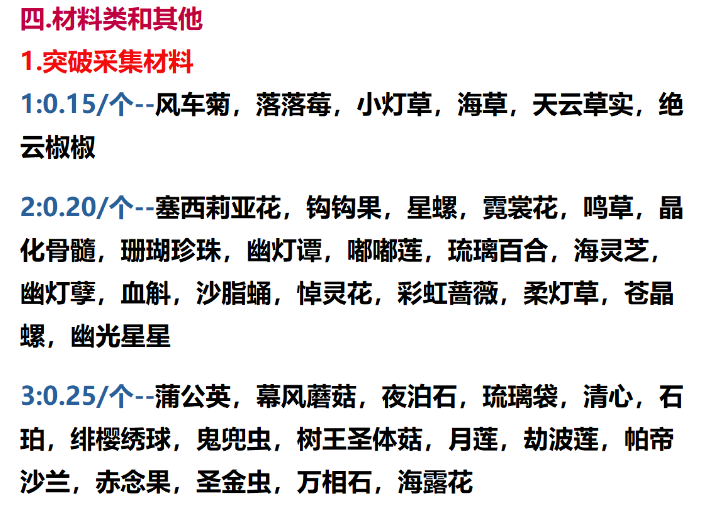 小紫的《原神》代*价格表主要包括四大部分,一是日常与活动的托管,用户可以按天或者按月下单,其中“委托”日常的价格是2元一天。二是补探索度的价格,比如“枫丹4.0地图”补全是300元,单区100元。第三种是做任务,不同任务的价格不同。最后一种是采集材料,比如游戏中的晶蝶、风车菊、落落莓、小灯草、蘑菇、甜甜花、松果等都是0.15元一个。