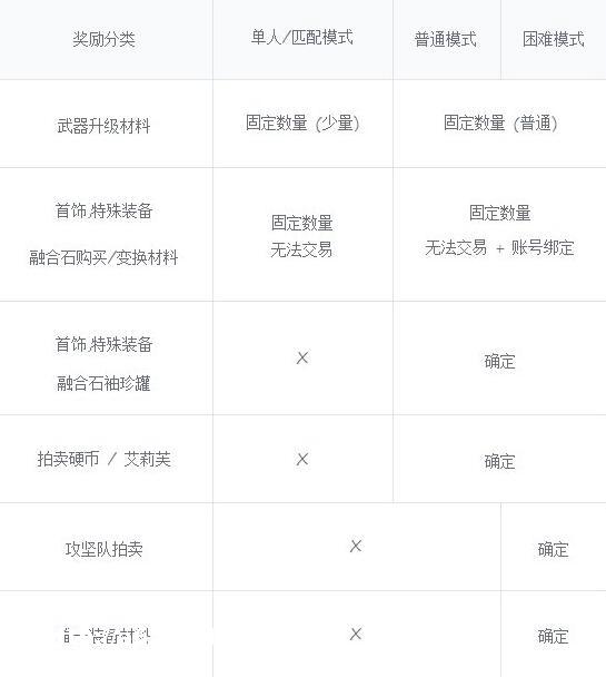 单人和匹配模式之间有小幅的奖励倍率差异,但融合石,武器升级材料等核心材料的奖励没有差异.
