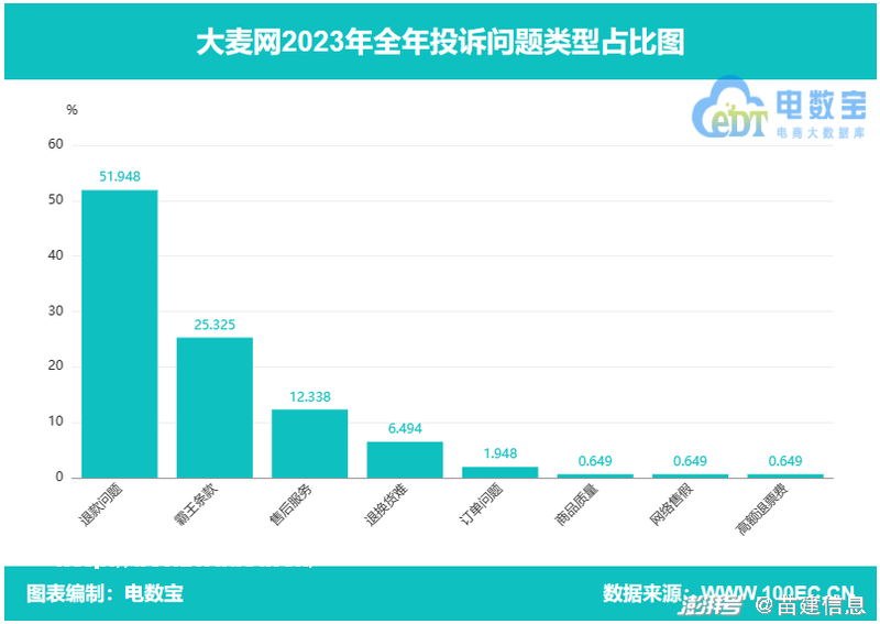 线下演出存在“退票难”争议是2023年上半年社会影响力**的热点,消费者**大麦网、纷玩岛等**票务平台的改签、退票措施不合理,退款问题是大麦网2023年最主要的**问题,占比近52%。