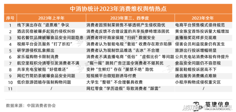 短视频*导付费,小程序购物**等问题为主的互联网行业;以汽车降价**和安全质量问题为主的汽车行业;以及以线下演出、住宿**,研学游**,旅游团强制购物等问题为主的文旅行业。