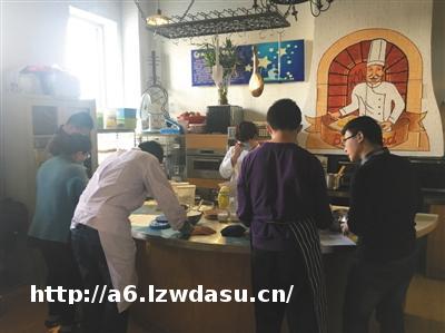 烘焙坊的刘老师说,她希望营造一种真正的上班气氛。但这个过程看起来还是像“过家家”,因为在每个细小的环节,这四名20岁左右的年轻人都需要老师的辅助。