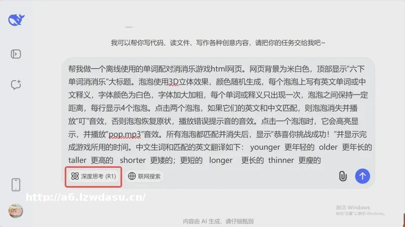 打开DeepSeek,输入指令: