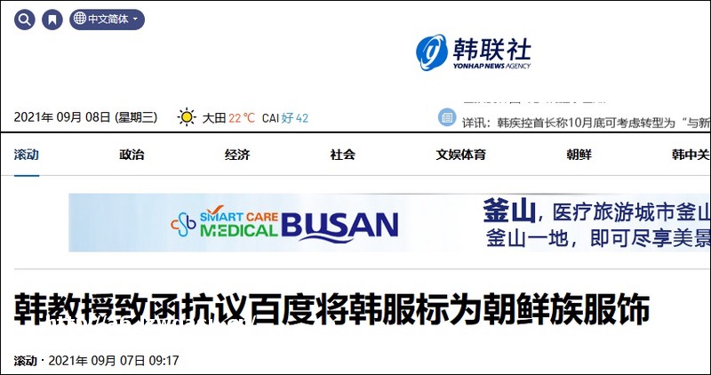 徐坰德此前“碰瓷”中国朝鲜族服饰 韩媒报道截图