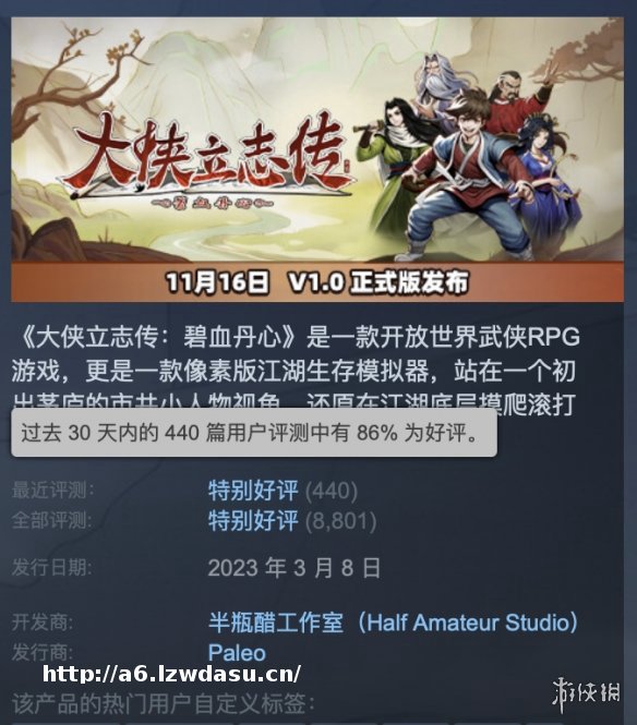 回到整个游戏开发与发布的进程,时至今日,无论在剧情方面还是系统方面,被充实和改进的部分都是肉眼可见地不断增长。2026年6月28日的《大侠立志传》已经是一个让人能够探索和挖掘很久的江湖RPG。