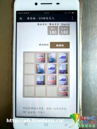一款名为“淮师大版2048”的小游戏在淮北师范大学校园里风靡开来。校园地标、各院院徽、社团标识、大学课本等丰富多彩的游戏界面让同学们玩的直呼过*。益智小游戏与校园生活的事物相结合,让同学们对校园文化有了更深层次的了解:“我们使出洪荒之力经过无限循环对各院院徽、校园各处地标进行加和,终于了校园2048”。