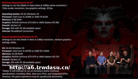 而早在《暗黑破坏神4》还处于宣发阶段时,暴雪就公布过它的配置需求。对显卡的**配置要求为NVIDIA GeForce GTX 660或AMD Radeon R9 280;推荐配置要求为NVIDIA GeForce GTX 970或AMD Radeon RX 370,这在当今这个盛产“显卡**”的时代**不算高。