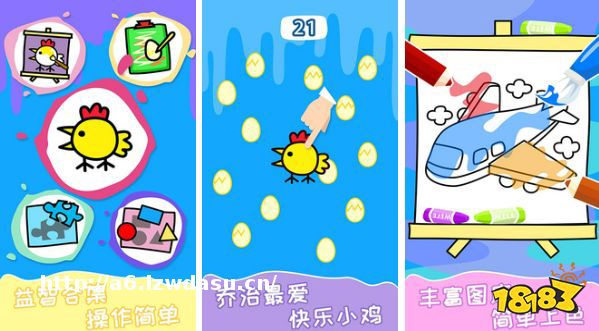 在快乐小鸡这款游戏中充满着无限的童趣,游戏中有抓小鸡,小鸡下蛋,小鸡拼图和涂色等等玩法,游戏的画风十分可爱,充满着童趣,游戏中有着丰富的图案和小朋友们喜欢的元素,简单操作就能收获满满的快乐,在游戏中还能够帮助小朋友们认识图形,进行趣味学习,培养小朋友们的耐心以及思维逻辑能力,如果能够和家长们一起玩,那就更好了!
