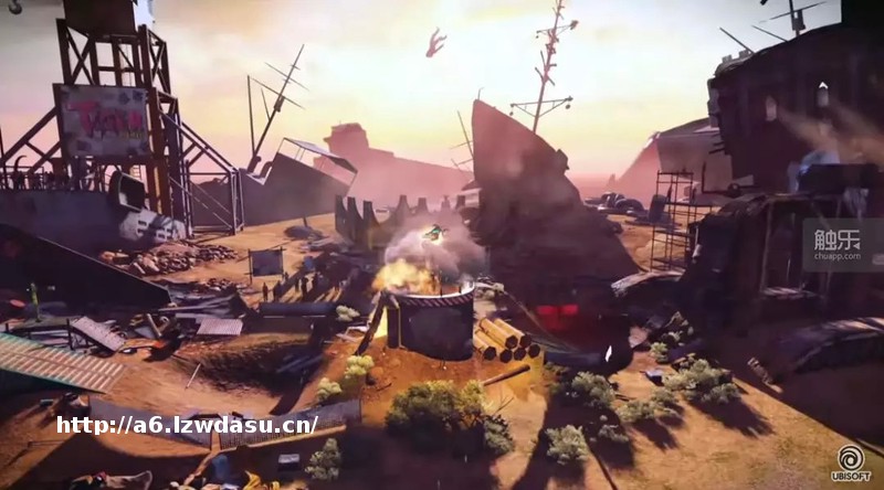 是的,从实机演示画面上看,这款游戏名义上是特技题材,但看起来摔车撞车才是它最有意思的玩法。演示视频前半段看着还有点特技运动游戏的影子,但是后半段画风急转直下,简直就是一部摩托车手版的《一百万种死法》,撞上螺旋桨被打飞、被铁锤砸死、被集装箱夹死、掉进熔炉、一头撞爆桶……育碧中国之后放出的中文版视频中甚至直接打出了“吃得土中土,方为人上人”的宣传语。