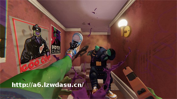 **人称视角下玩家不仅可以踢倒敌人,还可以踢开门、踢碎家具和其他物品。