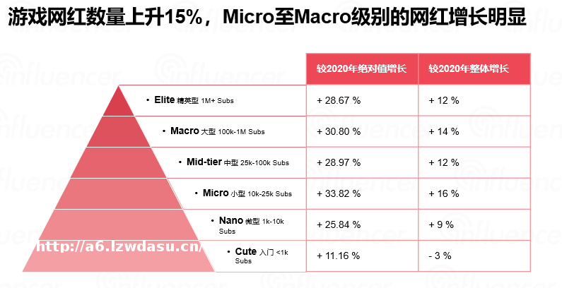 2021年YouTube游戏网红增长15%,而且小型和**网红增长明显。